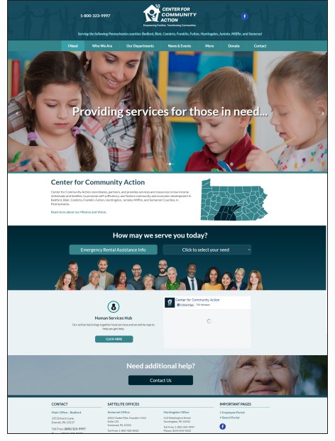 The Center for Community Action coordinates, partners, and provides services and resources to low-income individuals and families, to promote self-sufficiency; and fosters community and economic development in Bedford, Blair, Cambria, Franklin, Fulton, Huntingdon, Juniata, Mifflin, and Somerset Counties, in Pennsylvania.