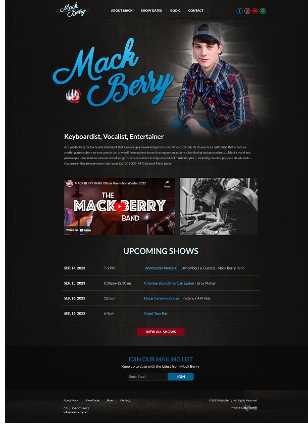 The newly designed www.mackberry.net by DH WEB, Inc. stands as a shining example of how a website can effectively convey a entertainer’s essence and values. Through its captivating design, informative content, and user-friendly interface, it offers visitors an immersive experience while showcasing Mack Berry’s commitment to his music.